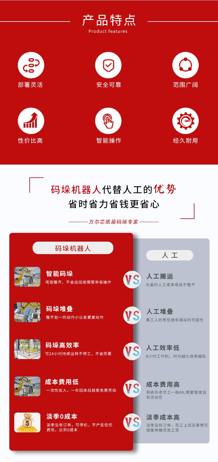 介紹:協(xié)作碼垛機器人是智能機器人,與人類工作人員緊密合作,提高生產(chǎn)效率、靈活適應(yīng)不同任務(wù)。配備傳感器,能自主學(xué)習(xí)、感知環(huán)境。廣泛應(yīng)用于紙箱、醫(yī)藥、食品等多個行業(yè)生產(chǎn)線。革命性提高生產(chǎn)線智能化程度,為工作人員創(chuàng)造更的工作環(huán)境。