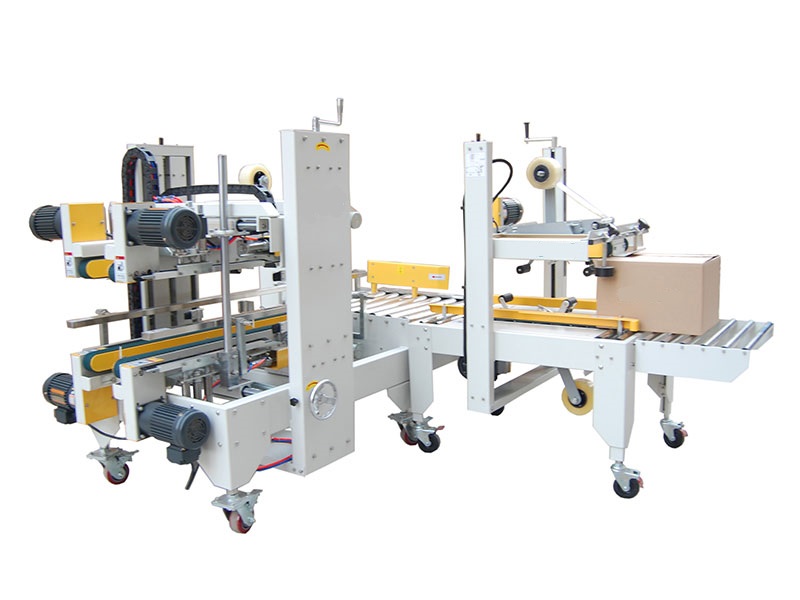 介紹:角邊膠帶封箱機WRB-56+WRG-50的,適用多種紙箱規格,僅需手工調節寬度及高度,方便、快速;90°轉角機,氣缸自動推箱;紙箱上下四個角邊同時自動封箱、撫平、快速、平穩;可與WRA/WRB/WRC機型聯機組合完成工字型封箱機。 產品別稱:全自動封箱機、工字封箱機、一字封箱機、十字封箱機、四角邊封箱機、上下驅動封箱機、左右驅動封箱機、快遞封箱機、電商封箱機、膠帶封箱機、快速封箱機、可調封箱機、伺服封箱機